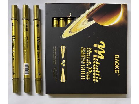 caneta brush pen com 2 pontas , core metalica dourado , 12pcs/box , 1728pcs/cx